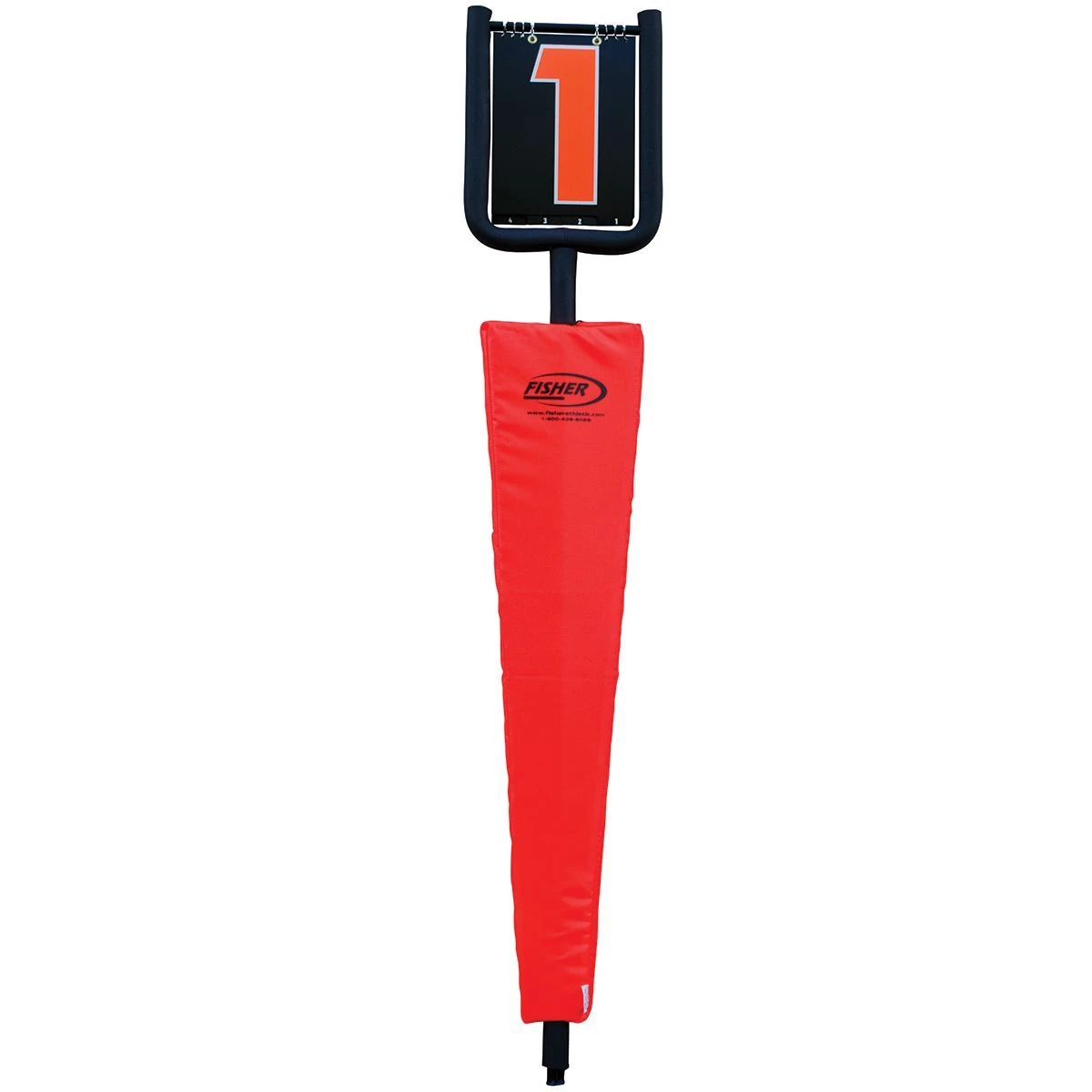 TheΒ Fisher flip down box football marker is padded for extra safety and features brightly colored, double-sided numerals. The numbers will bend, but they will never break!