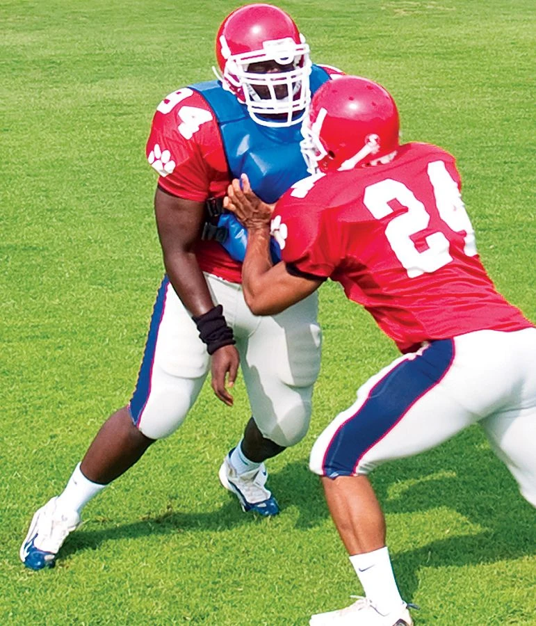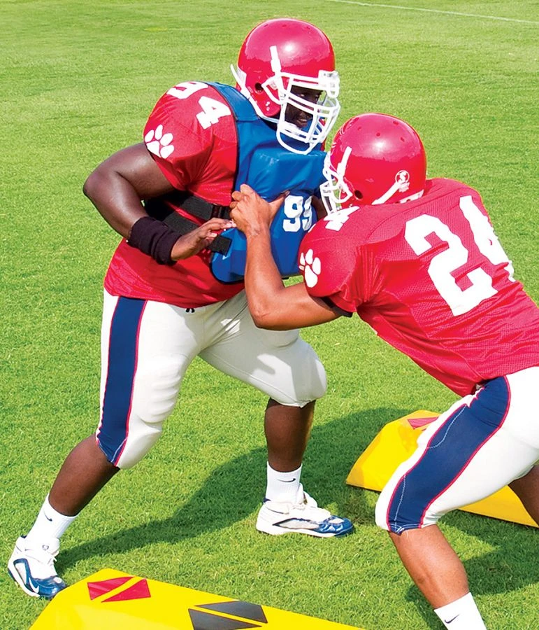 This Fisher strike vest provides excellent body protection while letting players engage with their handsΒ free. Β Defensive backs can focus on jam techniques while wideΒ receivers can improve on their release techniques.