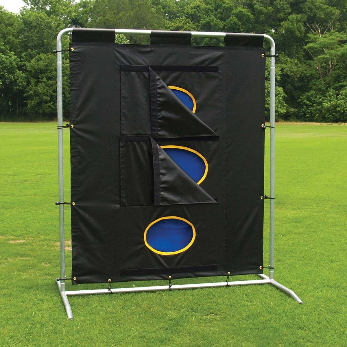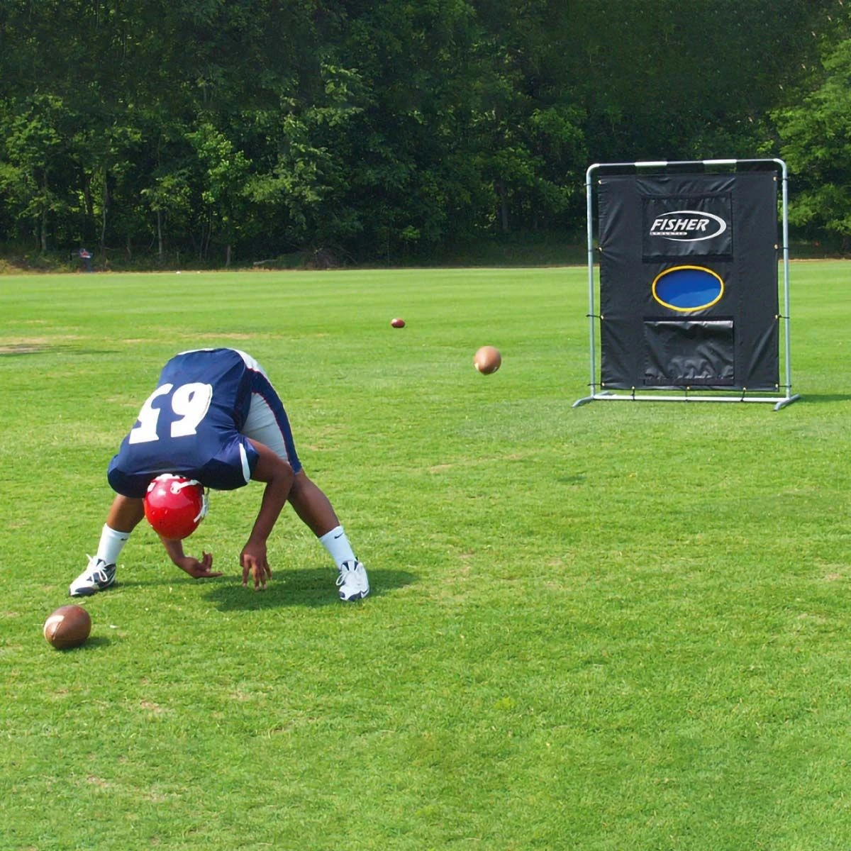 This Fisher Snap Coach trainer provides a strong visual aid for precision snaps allowing a long snapper to practice alone any time. Multiple target locations allow for practicing snaps for punts, field goals and shotgun snaps.Β Two separate, non-detachable flaps cover two unusedΒ targets at any given time and the Velcro closure allows for easy attachment to cover the unused targets.Β The steel frame snaps together so thereΒ are noΒ tools required!