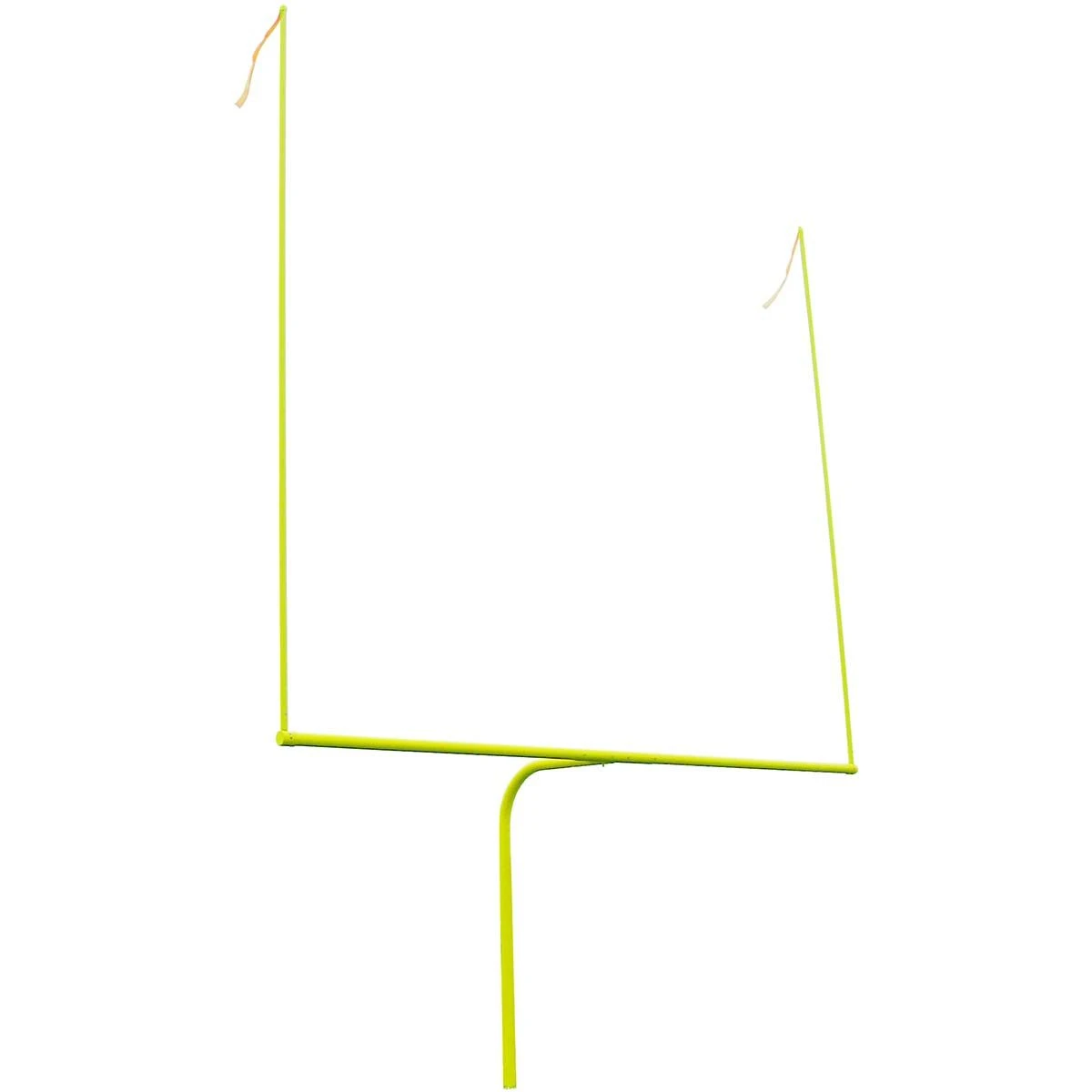 The All Star football goal post from First Team is an exceptionally sturdy and budget-friendly system for high school or college play. This post features a 4 1/2β diameter aluminum crossbar and 2 3/8β diameter aluminum uprights that attach to the 4 1/2β diameter steel post, which is finished with a galvanized undercoat for rust-free protection. Several features make setting up this goal post one of the easiest in the industry, including the telescoping nosecone that allows the overhang distance to extend anywhere from 6′ to 6β 6β to ensure the crossbar is even with the back of the endzone. Each 20′ upright is attached to a fully rotational corner elbow to allow the uprights to be assembled in a straight manner every time. This goal post comes in two sizes: 23′ 4″ high school level crossbar or 18′ 6β college level crossbar. See βAdditional Infoβ tab for installation instructions and diagrams.