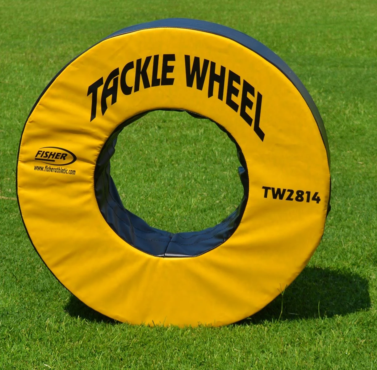 The Fisher pursue and tackle wheel is a game changer in football training equipment. Its innovative design makes the tackle wheel an incredibly effective tool for teaching proper tackling pursuit angles and wrap up technique. Now you can run open field tackling drills without other bodies, reducing the potential for injury. Made of durable 9 lb. rebond foam coated in heavy-duty vinyl, the tackle wheel can withstand the toughest football drills. The Fisher tackle wheel is a must have piece of football training equipment for any program.