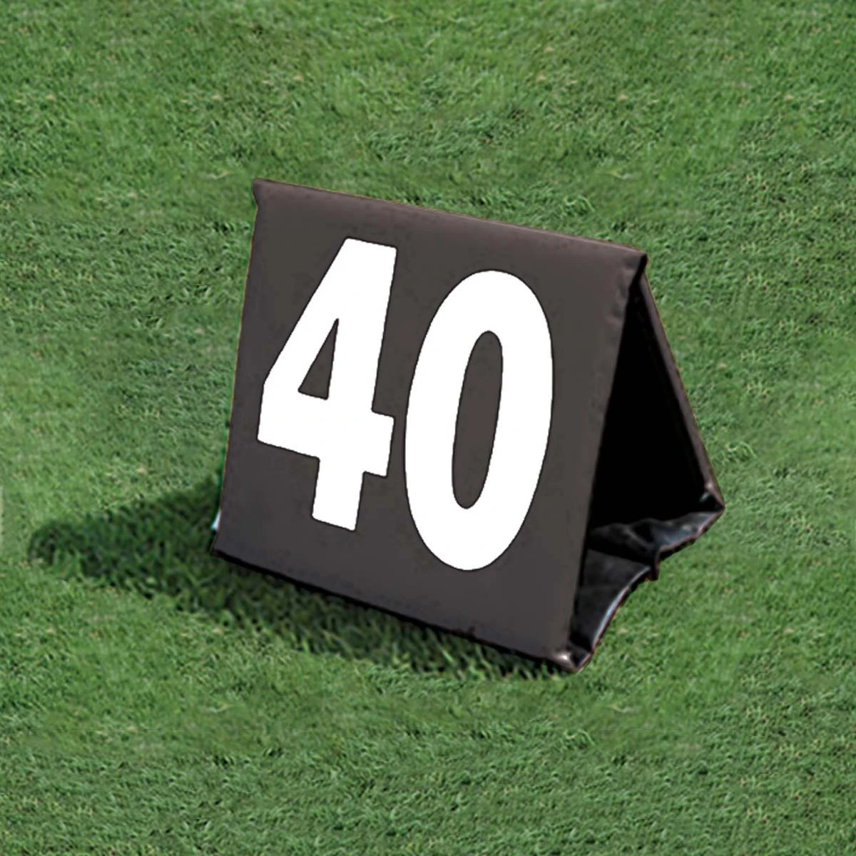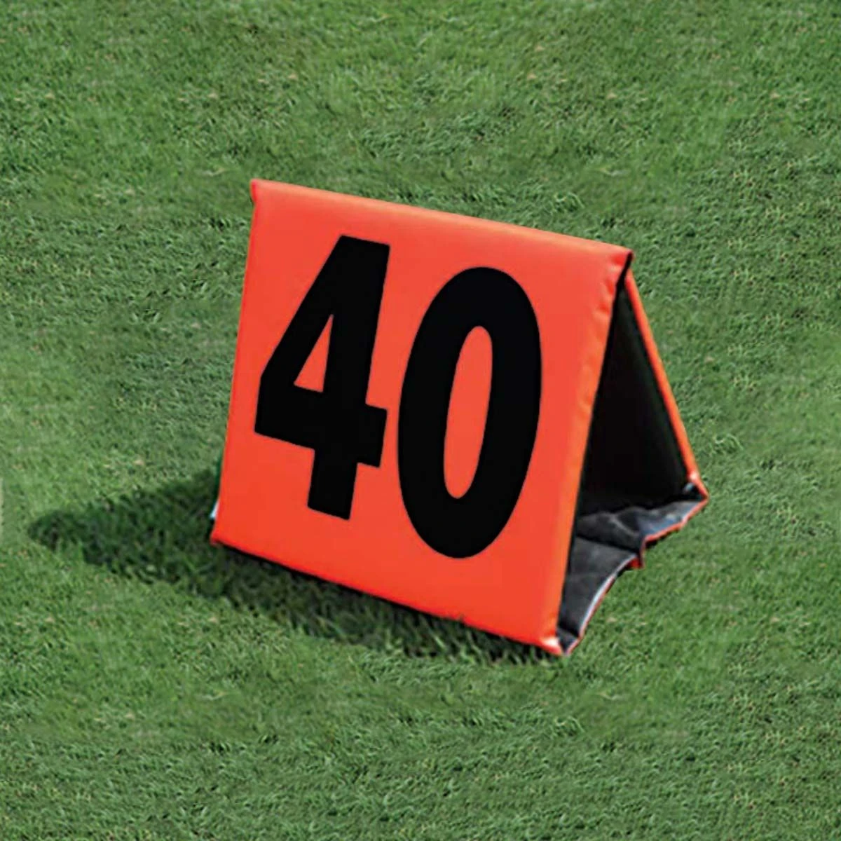 Fisher foldable football sideline markers provide an economical way to mark your football field in 10 yard increments. Β The pop-up style markers collapse on impact and then pop up. Β The markers are constructed of thick polyfoam with a durable vinyl cover that will provide your program with years of use. These foldable yard line markers come in a set of 11 and are available with black numbers on an orange background or white numbers on a black background.