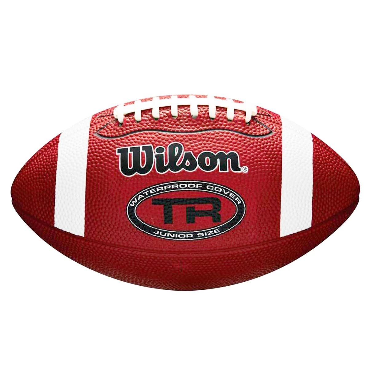 The Wilson TR junior waterproof rubber football features a sponge rubber waterproof cover with a deep pebble design, making it perfect for any weather condition. The TR junior is equipped with a double laced, collegiate/high school pattern. The TR Waterproof Rubber football has a high air-retention rubber bladder. The deep rubber pebble on the Waterproof football make
