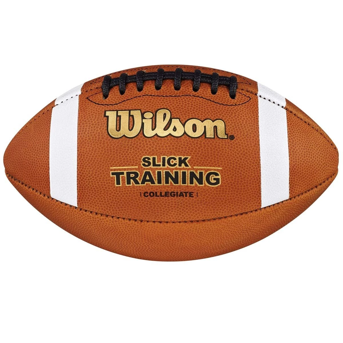 The official size Wilson Slick Training Football features a unique slick leather finish that’s designed to mimic the reduced gripability faced during wet weather conditions. Wilson’s Slick Training technology benefits every skill player on the field by training teams to catch more, fumble less – rain or shine. The Slick Training ball is made of Wilson’s exclusive WE 863 leather, has ACL patented lace technology, and has a multi-layered lining for consistent shape and durability. After training with the slick football you’ll be able to throw bombs to the back of the end zone in the rain or the snow with no trouble at all.