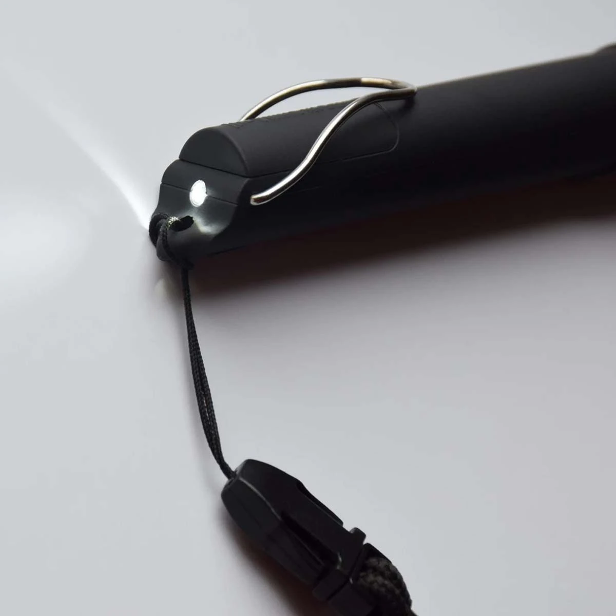 - Includes metal ring, clip, custom lanyard and 4 cell batteries