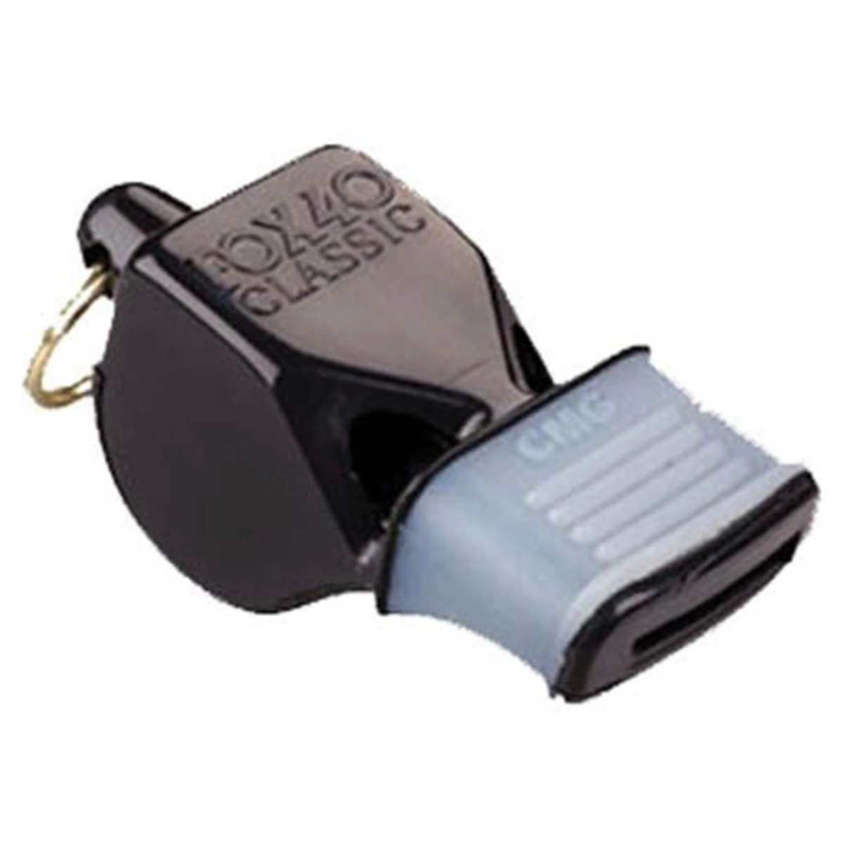 The Fox 40 Classic cushioned mouth Grip whistle is a black, pea-less whistle that is ideal for those who need to hold the whistle in their mouth for an extended period of time.