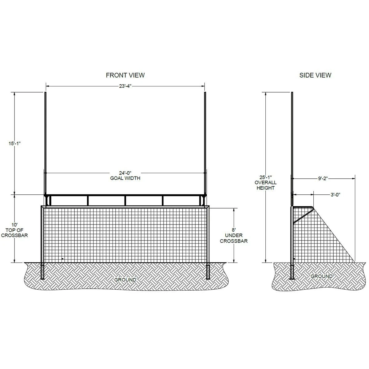 - Official football goal: 15โ-1โ H x 23โ-4โ W