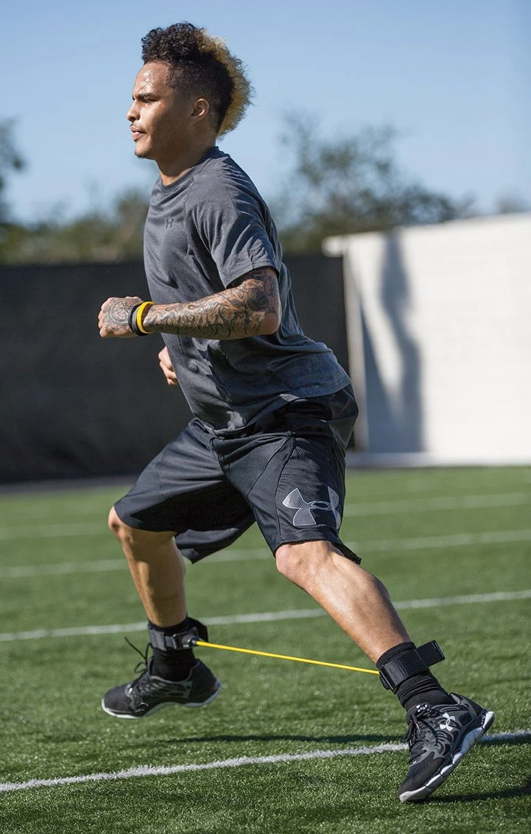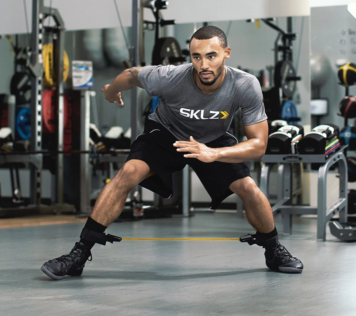The SKLZ Lateral Resistor Pro helps to increase first-step quickness and lateral speed and is constructed with three separate resistance cables that combine with patented Slide-Lock technology for quick, safe switching between cables. The three included cable resistance levels are light, medium, and heavy. This training aid strengthens key muscles for fluid movement and proper body positioning.