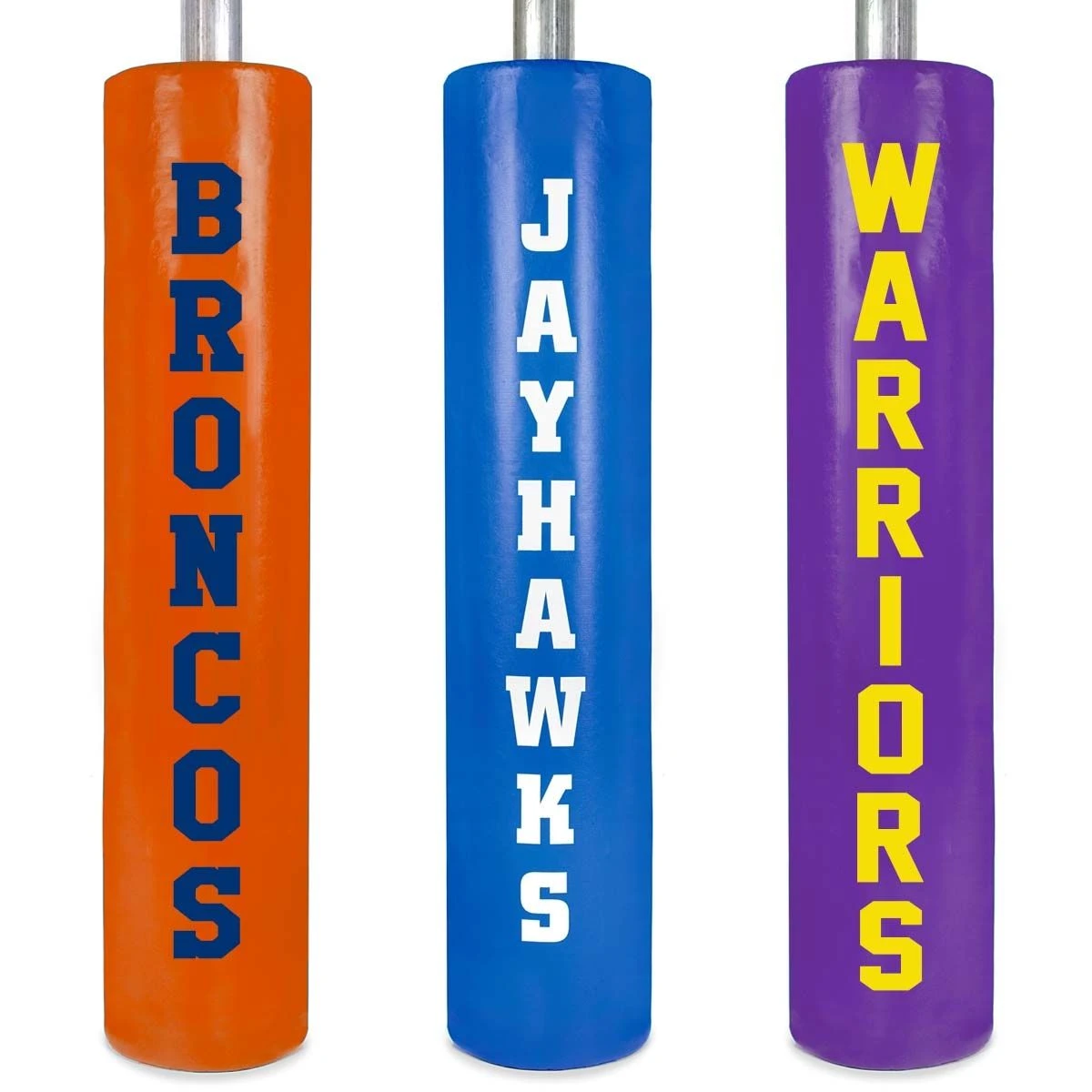 This 1-color goal post lettering is computer cut and sewn-on for exceptional durability. It will not peel or scrape off and will last years with proper care. Order this lettering with any pair of Fisher post pads. Athletic block font is standard but other fonts are available – contact Anthem Sports.