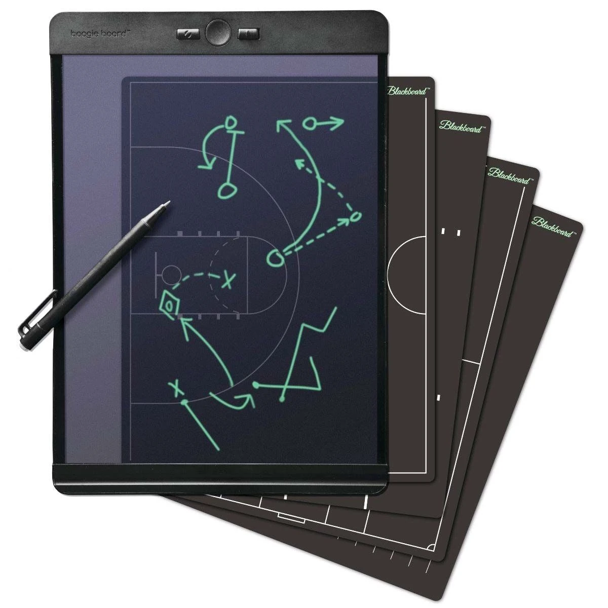 The Boogie Board sports coaching blackboard is a must-have coaching tool for the high-tech coach. The Boogie Board writes and erases electronically without ink or paper. It’s a whole new way to write, edit, and erase your game notes or game strategy. This game-planning tool will take your play to the next level. No markers. No mess. Just more coaching. Use the blackboard for diagramming plays, setting lineups, keeping score, illustrating concepts, tracking and tabulating, conveying ideas, and brainstorming. There’s nothing to charge, plug in, or turn on with the Boogie Board. It’s electronic, but somehow you’ll never notice. With this blackboard you can effortlessly write on anything – grids, templates, documents, photographs, digital screens, anything! This clear screen technology includes four changeable templates but can also be used with any document. The large 8.5″ X 11″ writing surface feels just like pen on paper. The durable design can be used both indoors and outdoors. You have the ability to selectively clear the entire surface with the touch of a button, or erase like pencil with exact-erase. The lock switch prevents accidental erasing. New Liquid Crystal formula allows for precise writing. Download the free Blackboard app and easily capture, organize, search, and share your work, doodles, designs, lists, and more.