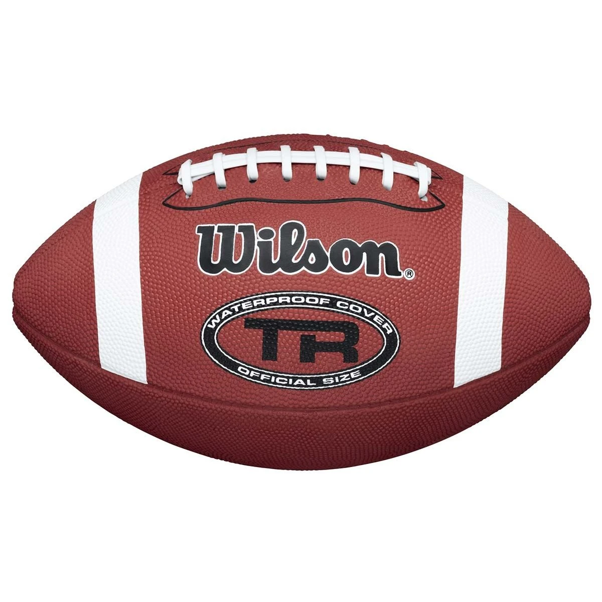 Wilson TR waterproof rubber footballs are official size and weight with a collegiate/high school pattern. This football features a sponge rubber waterproof cover andΒ is double laced. The TR Waterproof Rubber footballΒ has a high air-retention rubber bladder. The deep rubber pebble on the Waterproof football make it perfect for any weather condition.